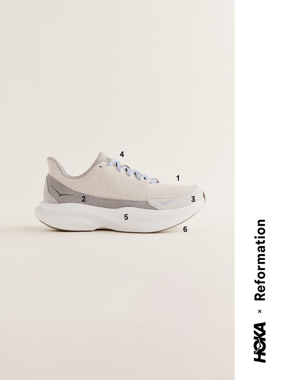 On a collaboré avec HOKA afin de créer des baskets pour les athlètes de tous les jours. Parce qu’il y a un tas de façons de bouger, et que notre préférée c’est avec une paire Ref x HOKA aux pieds. Elles sont 100% recyclables et fabriquées en polyester recyclé et coton biologique. Parfaites pour les sportives du dimanche, mais pas que.